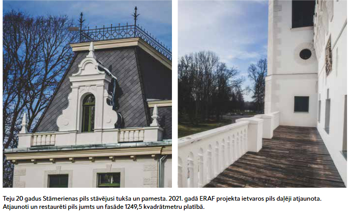 Kultūras ministrija bibliotēkām, tūrisma informācijas centriem un Kultūras ministrijas skolām dāvina grāmatu “Atrastā Latvija”, kurā apkopota detalizēta informācija par vairāk nekā 60 atjaunotiem un no jauna izveidotiem Latvijas kultūras un dabas mantojuma objektiem, arī Stāmerienas pili.