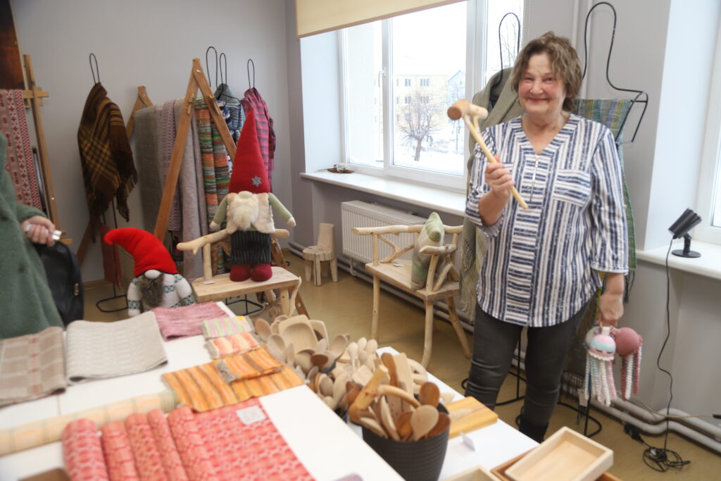 Tirdziņā ir arī leļļu meistares Evitas Zālītes darinātie rūķi. “Evita Zālīte mums ir uzaicināta pēc ilgāka pārtraukuma. No klāt pienācējiem tirdziņā ir interesantie Pētera Borodkina koka krēsli, Larisas Stradiņas rotaļlietas bērniem. Jau vairākus gadus mums ir sadarbība ar radošo apvienību “Piektā māja”, “Cibric”, kokapstrādes meistaru Viesturu Kļaviņu, kurš izgatavo dažādas saimniecībā noderīgas lietas. Savukārt mūsu audējas izpaužas, kā nu kura māk, ar lielākiem un mazākiem darbiņiem, un mēs piestrādājam pie kvalitātes,” stāsta B.Akmentiņa.