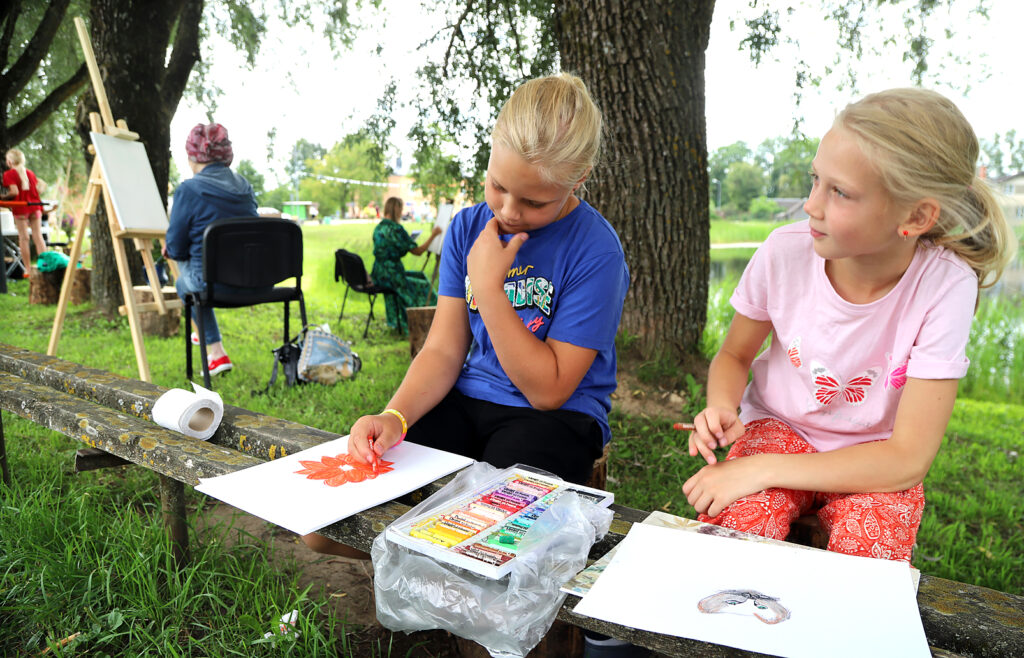 ARĪ bērni labprāt pavadīja laiku, zīmējot turpat pie Stāķu dīķa. Foto: Gatis Bogdanovs