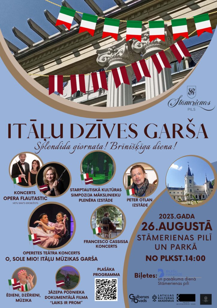 Ikviens ir aicināts sajust, baudīt un piedzīvot skaistas emocijas 26.augustā no pulksten 14.00 līdz 23.00 Stāmerienas pilī “Itāļu dzīves garšas” svētkos.