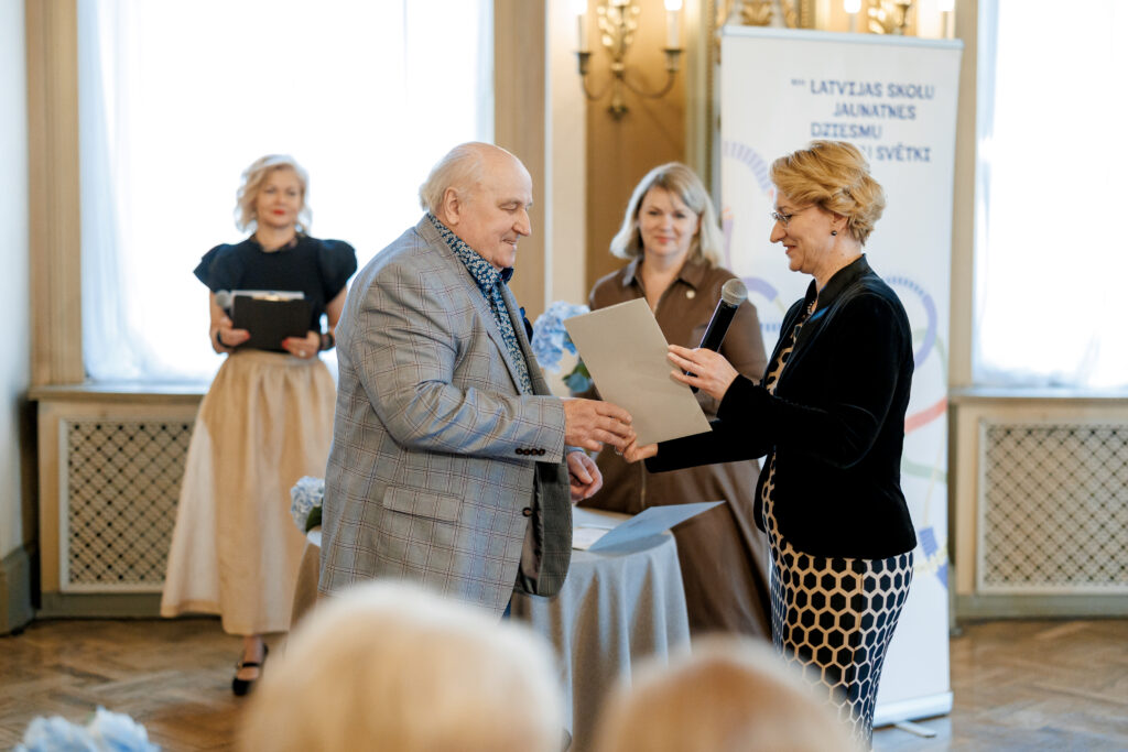 26. jūnijā svinīgā pasākumā Rīgas Latviešu biedrības namā Izglītības un zinātnes ministre Dace Melbārde sveica svētku virsdiriģentus, virsvadītājus, Goda virsdiriģentus un Goda virsvadītājus, kuri ilgus gadus piedalījušies un ar savu ieguldījumu veicinājuši Latvijas Skolu jaunatnes dziesmu un deju svētku kustību.