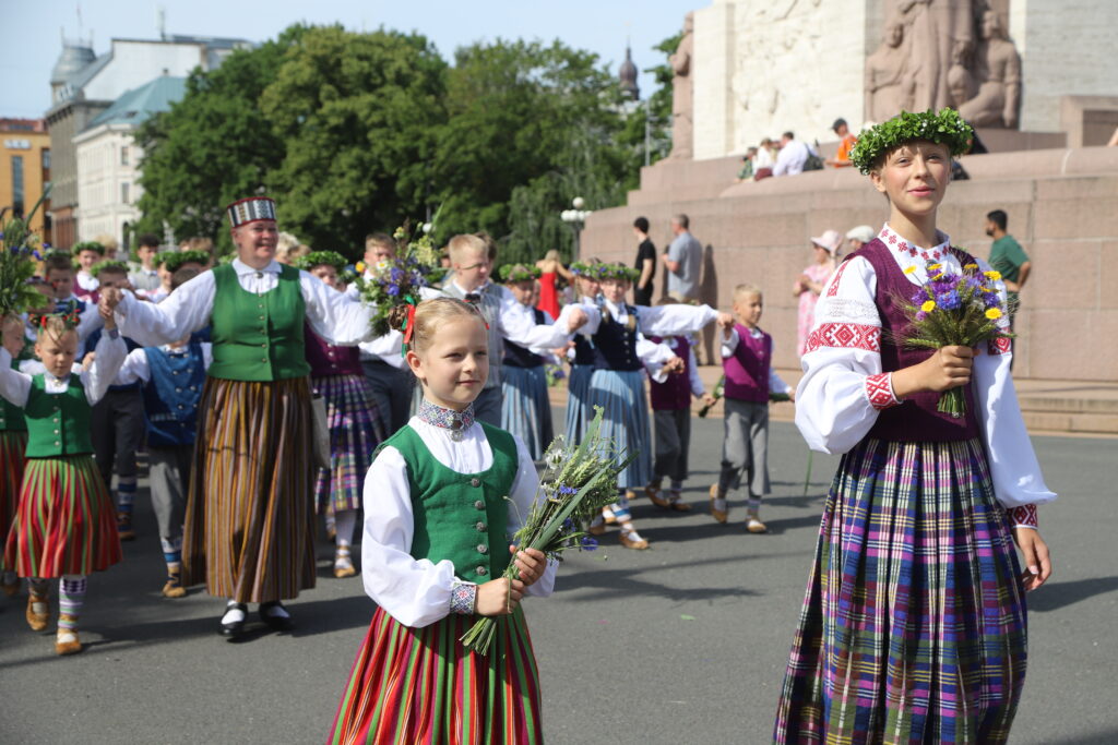 “Uz svētkiem tika darināti jauni kolektīvu karogi. Aija Auzāne darināja karogus “Ukcei” un “Draiskuļiem” pēc manas skices, savukārt “Knausīšu” karogu darināja Arnita Savicka pēc Dārtas Vilnes veidotas skices. 2024. gadā tērpiem tika tērēti 9539,22 eiro, savukārt šogad 6544 eiro. Mēģinājumu tērpus gādāja vecāki,” stāsta S.Zdanovska.