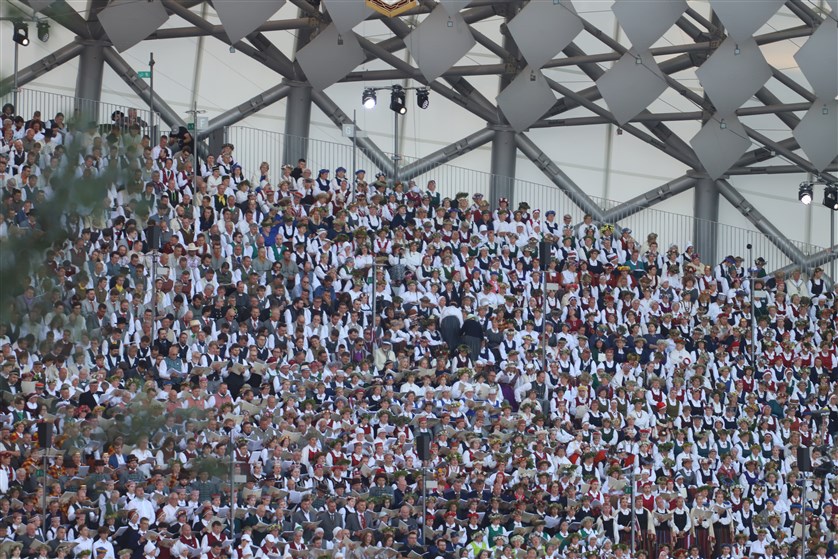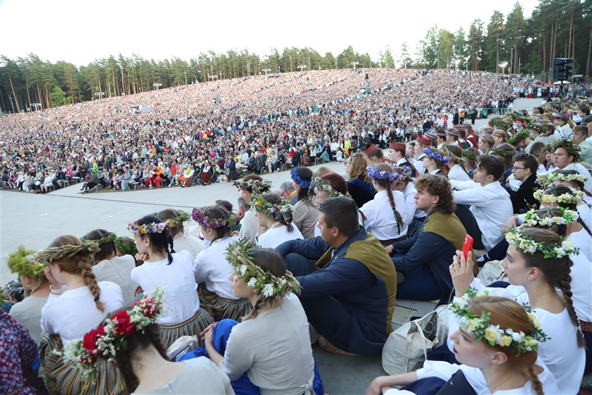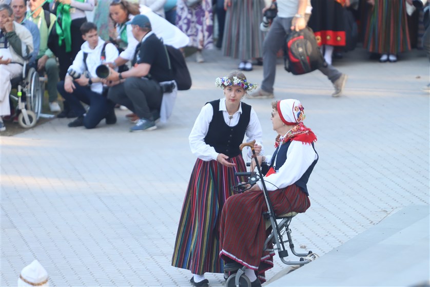 Viņa arī slavē labos sadzīves apstākļus skolā. “Ēdināja mūs ļoti labi. Lietus mūs pamērcēja pirmajā mēģinājumā – bija kājas slapjas, bet tas piederas pie dziesmu svētkiem. Būtībā laiks mūs lutināja, un labi, ka nebija ļoti karsts, jo Mežaparka estrādes ielokā jau pie plus 20 grādiem ir karsts,” saka Ligita.