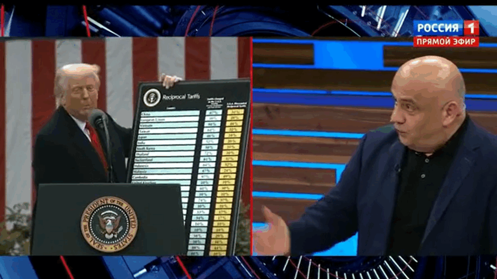 Aizvadītajā nedēļā Kremļa propagandistu visvairāk apspriestie temati bija ASV prezidenta Donalda Trampa izsludinātie tirdzniecības tarifi teju visai pasaulei, izņemot Krieviju, Baltkrieviju, Ziemeļkoreju un Kubu, kā arī Krievijas Tiešo investīciju fonda vadītāja un Krievijas diktatora Vladimira Putina īpašā sūtņa Kirila Dmitrijeva vizīte Vašingtonā, kuras laikā viņš ticies ar ASV valdības pārstāvjiem.