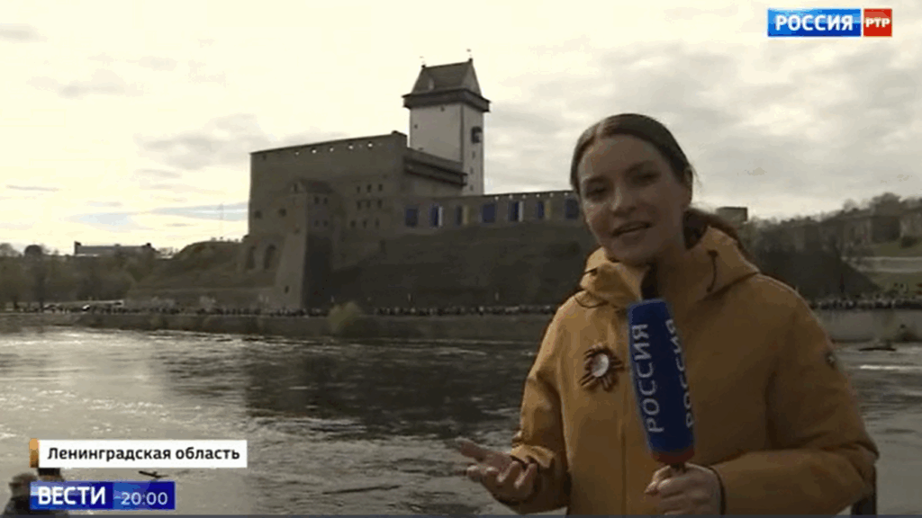 9.maija kontekstā krievu propagandisti arī koncentrējās uz Igaunijas pierobežas pilsētu Narvu, kuru pārsvarā apdzīvo krievvalodīgie. Proti, Narvai cauri tekošās robežupes otrā pusē atrodas Krievijas pilsēta Ivangoroda, kurā notika plašas 9.maija svinības. Kremļa ideologi steidza paziņot, ka Ivangorodas svinības bijusi Narvas iedzīvotāju vienīgā iespēja pieminēt Otrajā pasaules karā kritušos, un to izmantojuši teju visi Narvas iedzīvotāji. Ziņu raidījumu vadītāji steidza paziņot, ka Ivangorodas svinību piemērs, kuram atsaukušies Narvas iedzīvotāji, esot labākais pierādījums tam, ka Krievija nekur nebeidzas.