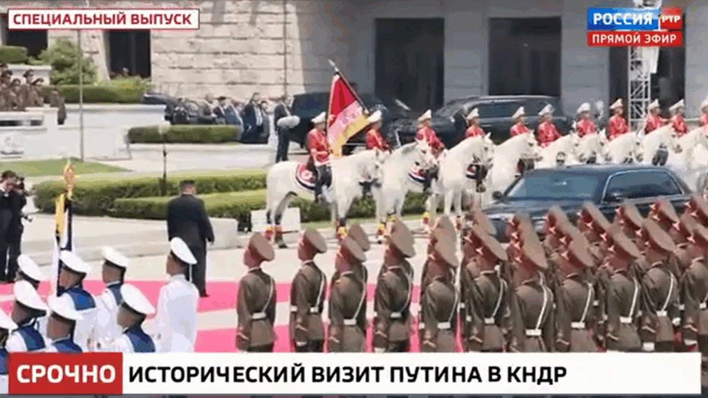 Krievijas televīzijas plaši atspoguļoja Putina sagaidīšanu Phenjanā, kas notika padomju totalitārisma labākajās tradīcijās. Pilsētas galvenajā laukumā bija sadzīti bērni ar sarkaniem pionieru kaklautiem un karodziņiem, kas skandēja “Putins, Putins”. Tika atskaņotas dziesmas “Varen plaša mana zeme dzimtā” un “Piemaskavas vakari”. Vairākos sižetos tika stāstīts, ka Ziemeļkorejas līderis Putinam uzdāvinājis ne tikai viņa bisti un portretu, bet arī divus retus Ziemeļkorejas sugas suņus.