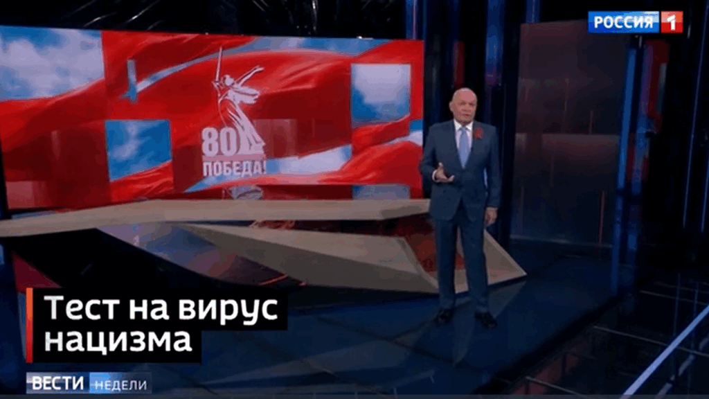 Propagandisti garos vēstures ekskursos nepatiesi centās teju visas Eiropas valstis iztēlot kā Hitlera sabiedrotās un atkārtoti klāstīja, ka pašlaik, atbalstot Ukrainu, eiropieši cenšas “revanšēties” par zaudējumu Otrajā pasaules karā. Proti, Otro pasaules karu uzvarēja tikai un vienīgi Krievija, pārējā Eiropa tikai traucēja. Tādējādi krievi paši nodarbojas ar vēstures pārrakstīšanu, ko tik aktīvi pārmet citiem.