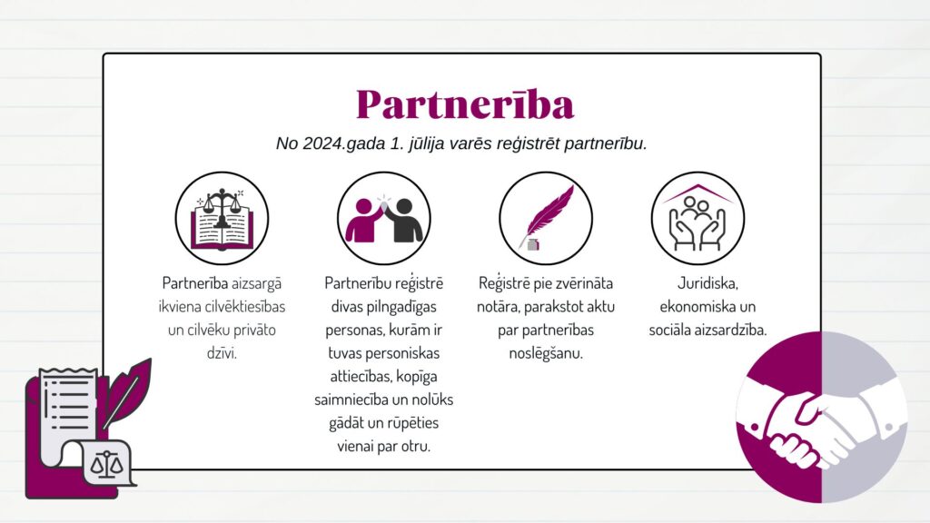 Plašāka informācija par partnerības reģistrēšanu pieejama Tieslietu ministrijas tīmekļa vietnē.