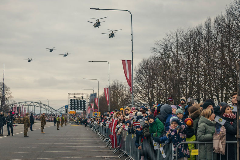 Divi Latvijas “Black Hawk UH-60M” helikopteri pirmo reizi pacelsies ar valsts karogu un tiem pievienosies trīs ASV “UH60 Black Hawk” un divi “CH47 Chinook” helikopteri, kā arī divi Kanādas “CH146 Griffon” helikopteri.