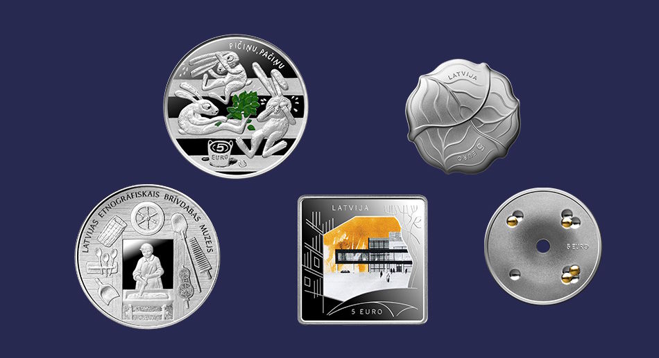 Iedzīvotāji aptaujā aicināti izteikt viedokli par piecām 2024.gadā izdotajām kolekciju monētām – “Pāri laikiem”, “Bērnu prieki”, “Enerģijas monēta”, “Uzcelt neuzcelto” un “Kāposts”.