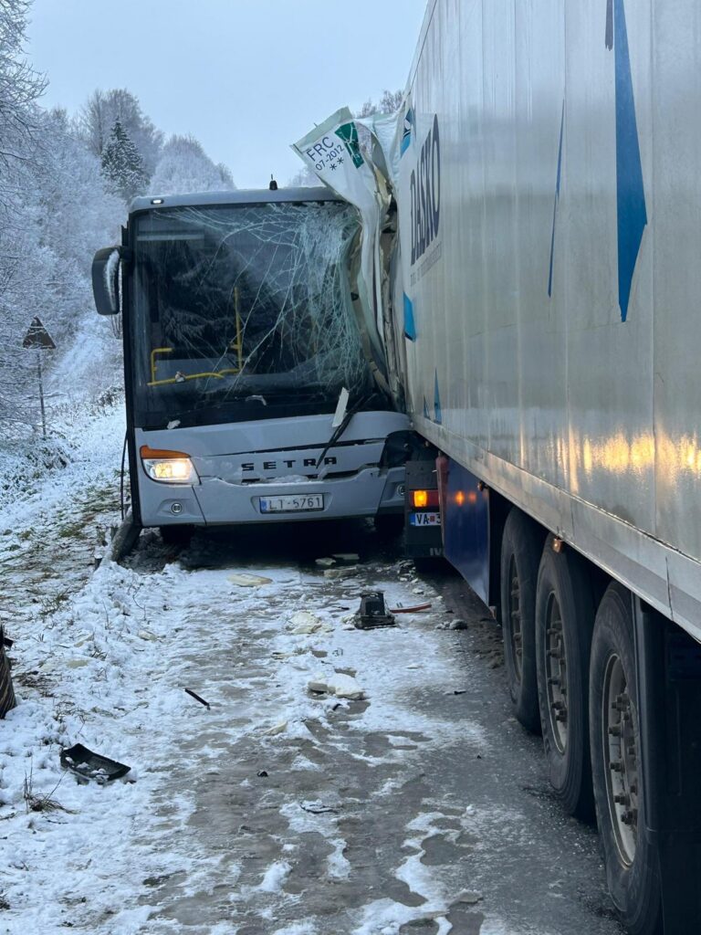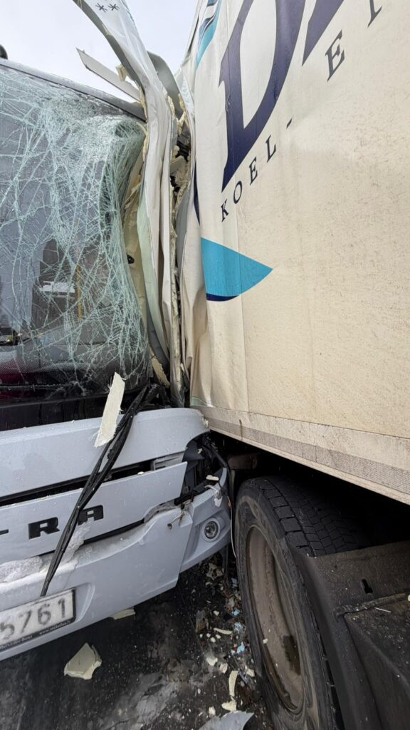 Negadījumu izraisīja kravas automašīna, kas izslīdēja no savas braukšanas joslas un frontāli sadūrās ar pretī braucošo autobusu.