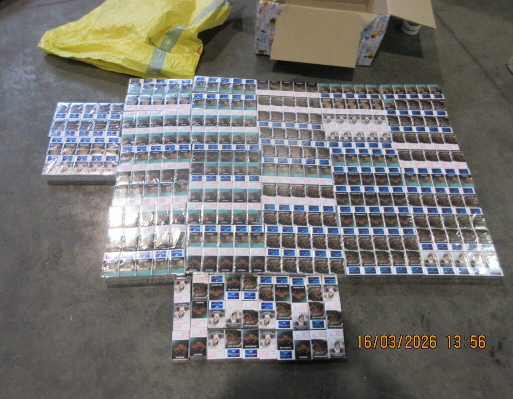 Pēc dažām dienām, veicot ievesto kravu pārbaudi, muitas amatpersonas noliktavā konstatēja pasta maisus, kuros atradās 3250 paciņas cigarešu (65 000 cigaretes) “Parliament” un “Sobranie”, kas marķētas ar Kirgīzu Republikas un Uzbekistānas Republikas akcīzes nodokļa markām. Šie sūtījumi bija paredzēti nogādāšanai uz Itāliju un Beļģiju.