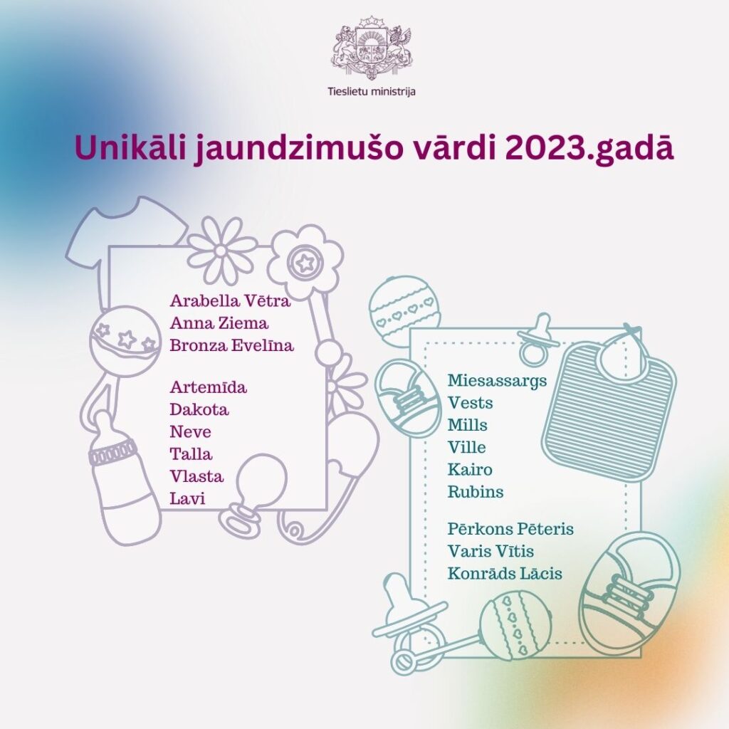 2023. gadā jaundzimušajiem tika reģistrēti neparasti vārdi, piemēram: Artemīda, Dakota, Neve, Talla, Vlasta, Lavi, Miesassargs, Vests, Mills, Ville, Kairo, Rubins. Tāpat jaundzimušajiem ir doti divi vārdi: Arabella Vētra, Anna Ziema, Bronza Evelīna, Pērkons Pēteris, Varis Vītis, Konrāds Lācis.