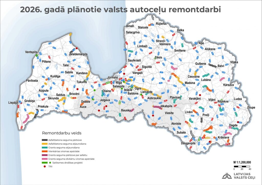 176 valsts autoceļu kilometros šogad atjaunos asfaltbetona segumu, 165 kilometros veiks virsmas apstrādi, vēl 103 kilometrus autoceļu ar asfalta segumu pārbūves. Savukārt uz grants autoceļiem 119 kilometriem plānots atjaunot segumu, 65 kilometros veikt divkārtu virsmas apstrādi, bet 28 kilometrus pārbūvēt no grants uz asfaltu. Šogad plānots pārbūvēt piecus tiltus, vēl deviņus nojauks un uzbūvēs no jauna.