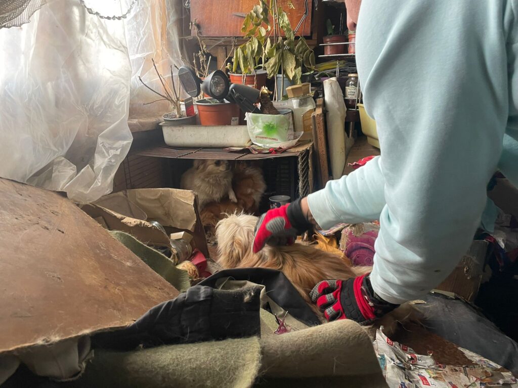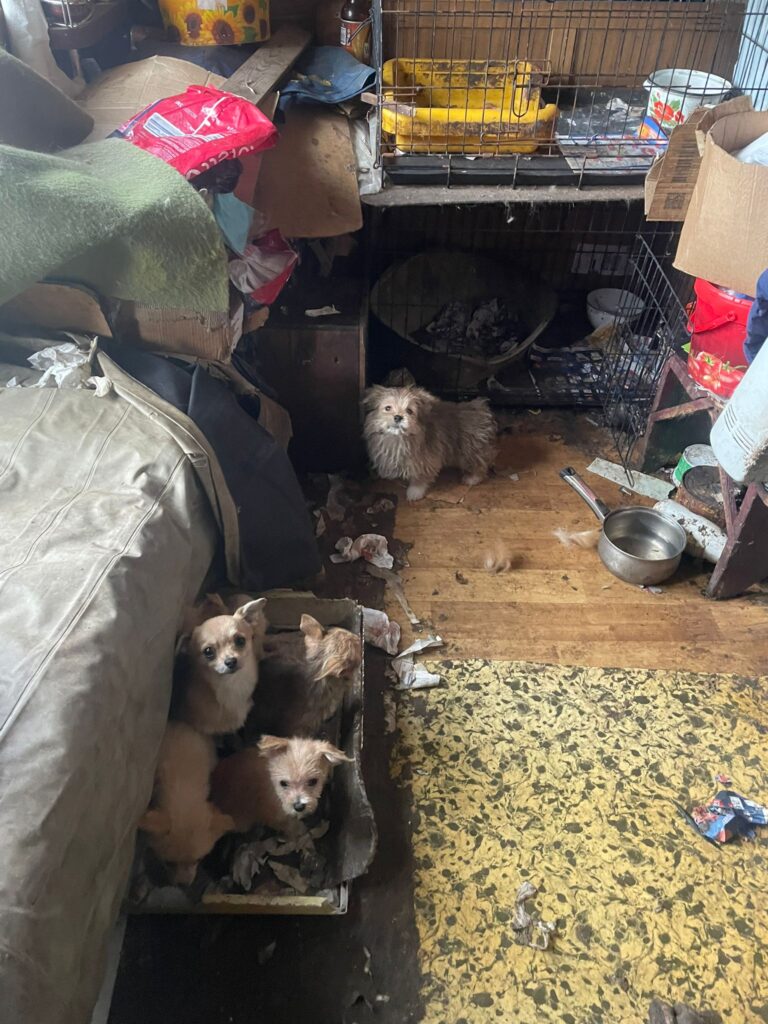 Ierodoties inspektoriem, dzīvnieku īpašniece apgalvoja, ka īpašumā atrodas tikai seši pieauguši suņi un uzrādīja to pases. Turpinot pārbaudi, atklājās, ka mājas 2. stāvā starp dažādiem atkritumiem antisanitāros apstākļos uzturas vairāk nekā 20 suņi, turklāt kucēni ir paslēpti somās. Atverot to rāvējslēdzējus, inspektori katrā konstatēja vismaz divus kucēnus, kuriem, esot iesprostotiem somās, acīmredzami jau bija sācis trūkt skābekļa.
