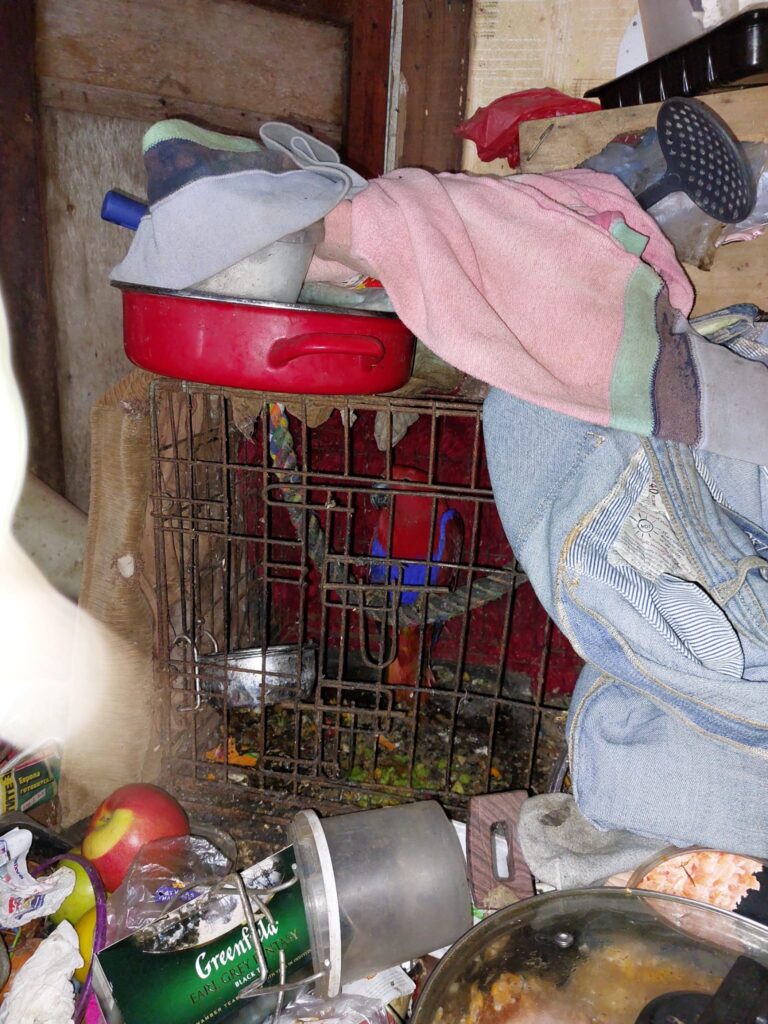 34 suņi un viens papagailis, kas tikpat antisanitāros apstākļos tika turēts mājas 2. stāvā, ir izņemti un nogādāti dzīvnieku patversmē.