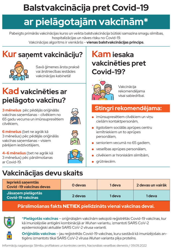 “Vakcinejies pret Covid-19 un gripu! Piesakies pie gimenes arsta, vakcinacijas kabineta vai manavakcina.lv. Negaidi, kad saslimstiba pieaugs!”