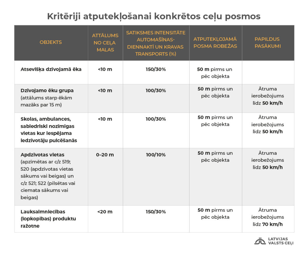 Atputekļošanai paredzēto posmu sarakstu veido, vadoties pēc vienotiem kritērijiem, kas apkopoti LVC izstrādātajās Vadlīnijās autoceļu ar nesaistīta materiāla segumu atputekļošanai.