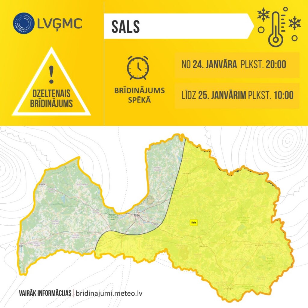 Gaiss naktī atdzisīs līdz -14…-19 grādiem, daudzviet Kurzemes piekrastē līdz -10…-14 grādiem, bet daudzviet valsts centrālajos un austrumu rajonos gaidāms stiprs sals – tur gaisa temperatūra pazemināsies līdz -20…-23 grādiem.