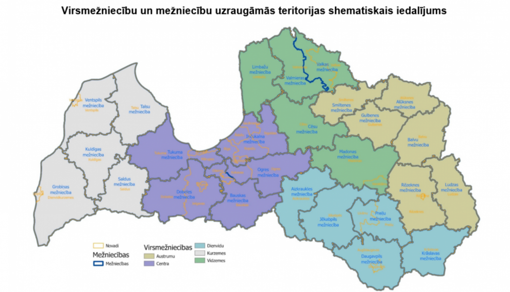 - Zemgales virsmežniecības un Rīgas reģionālās virsmežniecības funkcijas pārņem Centra virsmežniecība ar administrācijas telpām Brīvības ielā 129B, Ogrē.