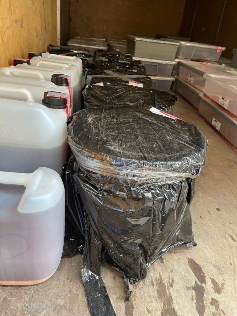 “Jāpiemin, ka šī ir viena no pēdējo gadu lielākajām narkotiku izņemšanām. Kopumā kratīšanās izņemts: vairāk nekā tonna gatavās produkcijas – sintētiskās narkotikas klefedrona; vairāk nekā 38 tūkstoši litru dažādu ķīmisko šķidrumu, kas pēc ekspertu atzinuma ir prekursori jeb pamatvielas sintētisko narkotisku ražošanai; laboratorijas iekārtas un dažādi priekšmeti, kas saistīti ar narkotisko vielu izgatavošanu; 5 automašīnas – 3 vieglās un 2 kravas automašīnas; vairāki mobilie tālruņi, SIM kartes, rūteri, portatīvais dators un citi priekšmeti, kam ir nozīme izmeklēšanā,” stāsta S.Grāvīte.