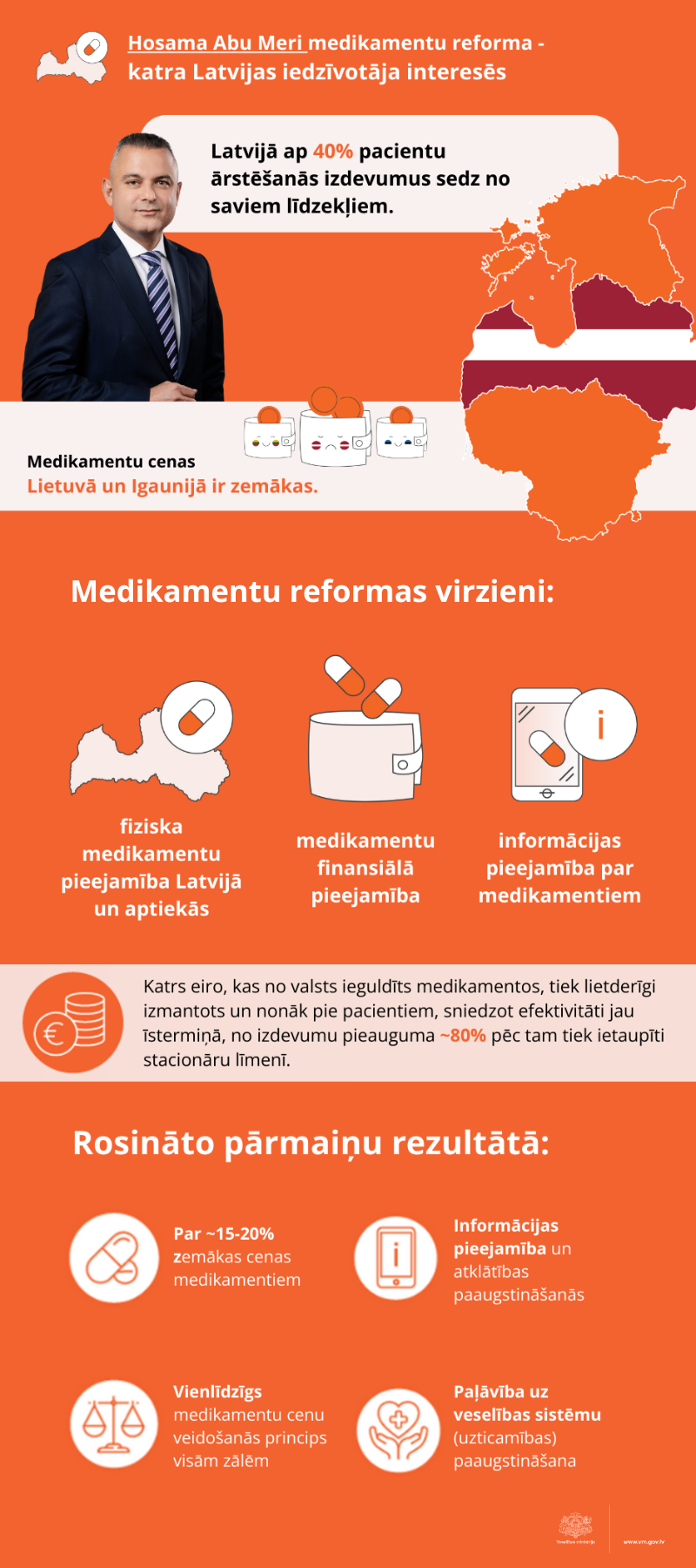 Izvirzot par prioritāti medikamentu pieejamības pilnveidošanu, mēs esam izvērtējuši gan pacientu – iedzīvotāju, gan nozares dalībnieku, gan valsts intereses, un es turpināšu darbu, lai panāktu recepšu medikamentu cenu samazinājumu vismaz 15 % apmērā, lai cenas recepšu zālēm būtu vienlīdzīgas neatkarīgi no diagnozes un lai nodrošinātu vismaz 75 % kompensāciju kompensējamajiem medikamentiem. Jau janvārī kopā ar nozari uzsāksim darbu pie kompensējamajiem medikamentiem, saraksta pārskatīšanu un papildināšanu ar jauniem medikamentiem un jaunām diagnozēm, papildus novirzot vēl gandrīz 30 miljonus eiro. Ir būtiski stiprināt farmaceitu lomu šo pārmaiņu īstenošanā, aptieku neatkarības stiprināšanu un īpaši pievēršot uzmanību reģionu aptieku darbības nodrošināšanai. Tāpat būtisks izaicinājums, ar ko saskaras arī visas Eiropas valstis, ir zāļu fiziskā pieejamība, tādēļ mums ciešāk jāsadarbojas ar vietējiem ražotājiem, kā arī jāatvieglo ģenērisko un biolīdzīgo zāļu iekļaušanu kompensējamo zāļu sarakstā.