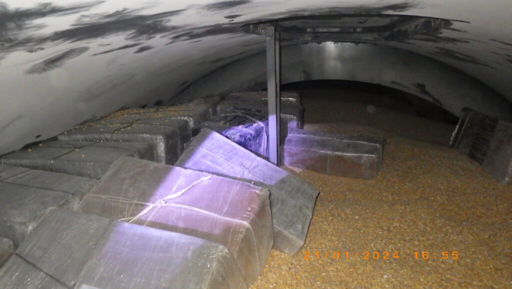 Savukārt 21. janvārī kravas vilcienā, kas bija iebraucis Latvijā no Baltkrievijas, kontrabandas cigaretes atklāja muitas kinologs ar tabakas izstrādājumu meklēšanas darba suni. Pārbaudot vilciena sastāvu, muitas amatpersonai radās aizdomas par nedeklarētu preču esību vagonā. Noņemot nodrošinājumus un atverot hopera tipa vagona lūku, muitnieki konstatēja, ka vagonā ar kukurūzas graudu kravu paslēptas 27 kastes ar cigaretēm. Tajās atradās 270 000 cigarešu jeb 13 500 paciņas cigarešu “NZ Gold” ar Baltkrievijas Republikas akcīzes nodokļa markām.
