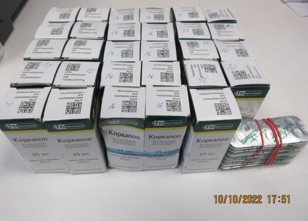 Papildus tam izņemtas arī 29 pudelītes ar Korvalola pilieniem. To sastāvā ir fenobarbitāls, kas iekļauts Latvijā kontrolējamo narkotisko vielu, psihotropo vielu un prekursoru III sarakstā – bīstamās psihotropās vielas, kuras var tikt izmantotas ļaunprātīgos nolūkos.