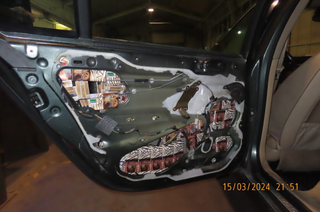 Valsts ieņēmumu dienesta (VID) Muitas pārvaldes amatpersonas, veicot muitas kontroli uz Latvijas robežas ar Baltkrieviju, novērsa cigarešu kontrabandu lielā apjomā. Kopumā 578 800 cigaretes (28 940 paciņas cigarešu) bija paslēptas vagonos ar kukurūzas miltu un lopbarības granulu kravām, kā arī vieglās automašīnas durvju konstrukcijā.