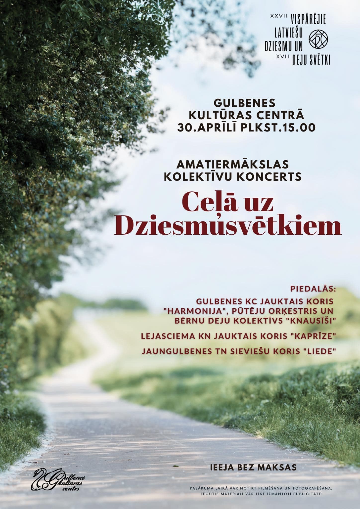 30.aprīlī 15.00 Gulbenes kultūras centrā – koncerts “Ceļā uz dziesmusvētkiem”.