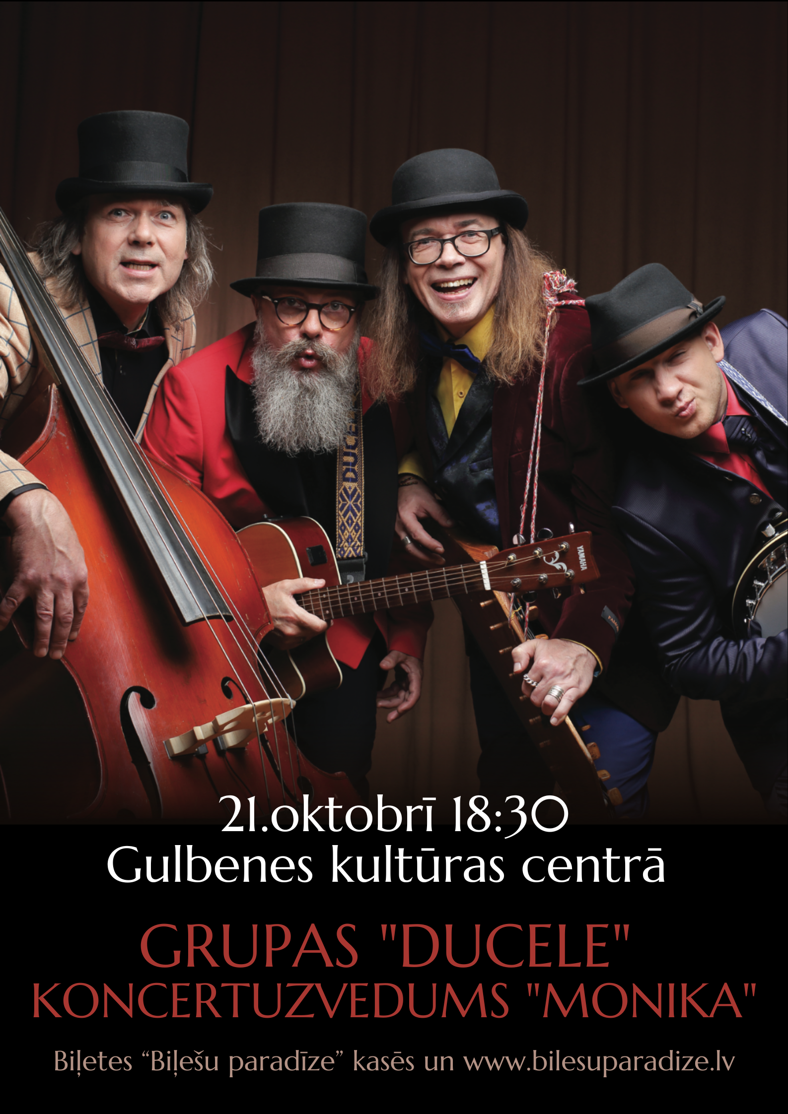 Gulbenes kultūras centrā 21.oktobrī pulksten 18.30 ekoloģiskās mūzikas orķestris “Ducele” sadarbībā ar rakstnieci Noru Ikstenu piedāvā uz grupas “Trīs no Pārdaugavas” dziesmām, pieredzi un piedzīvojumiem balstītu koncertuzvedumu “Monika”.