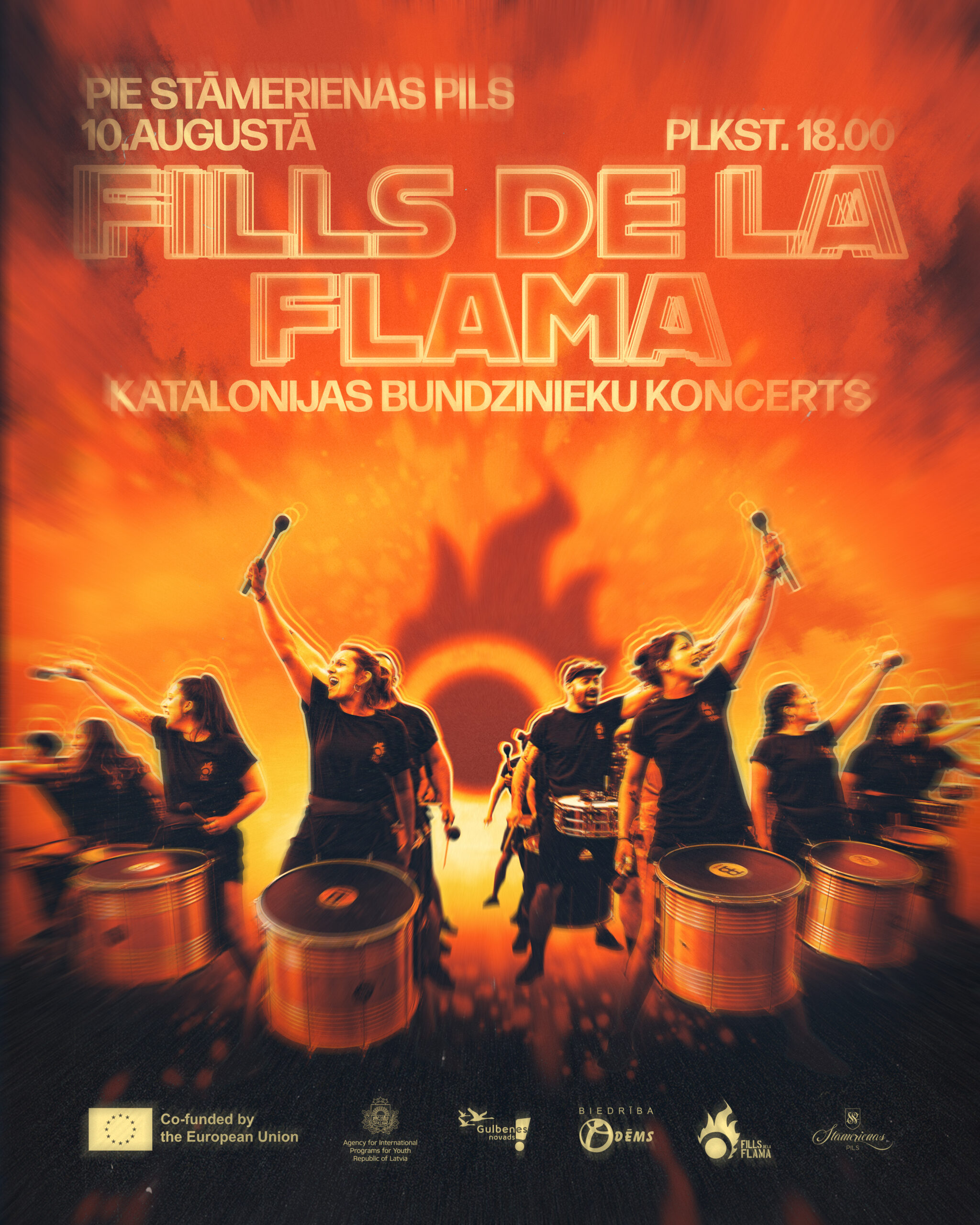 10.augustā 18:00 pie Stāmerienas pils Katalonijas bundzinieku koncerts “Fills De La Flama”.