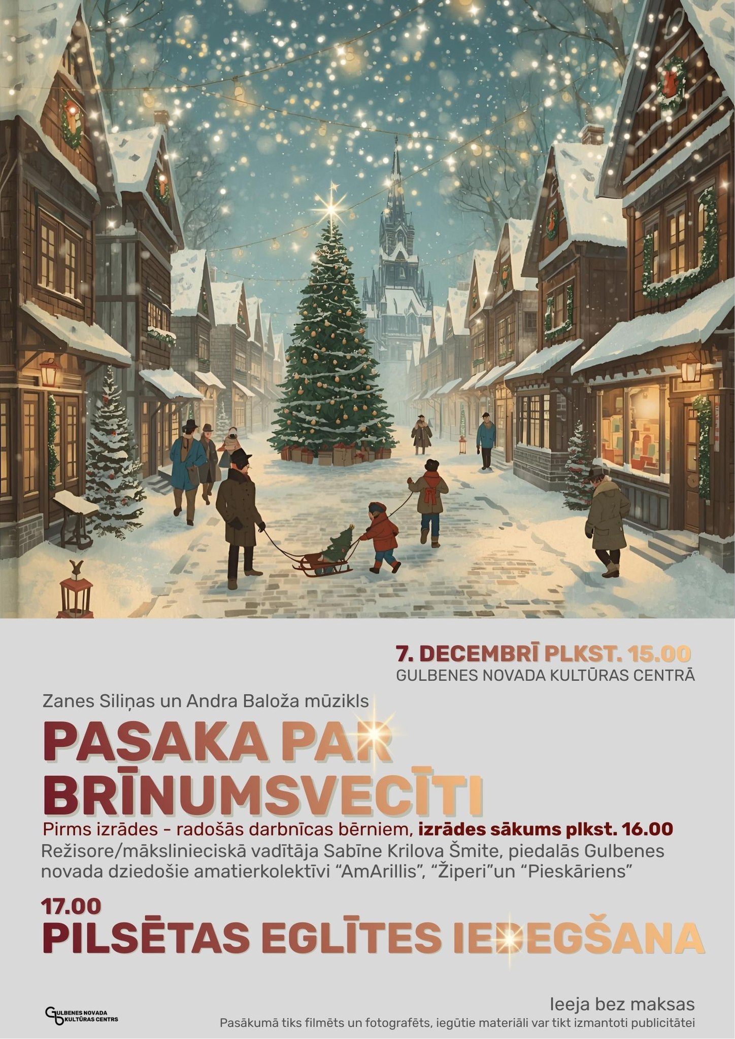 Radošās darbnīcas, mūzikls "Pasaka par brīnumsvecīti", egles iedegšana Gulbenē