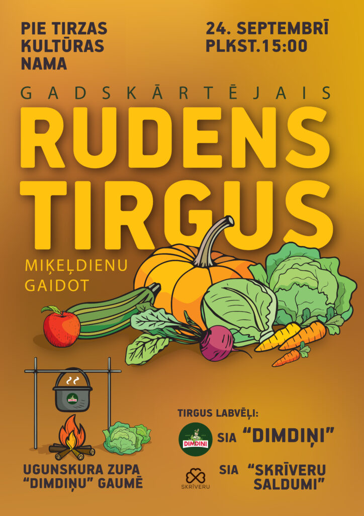 24.septembrī 15.00 pie Tirzas kultūras nama – gadskārtējais rudens tirgus, Miķeļdienu gaidot.
