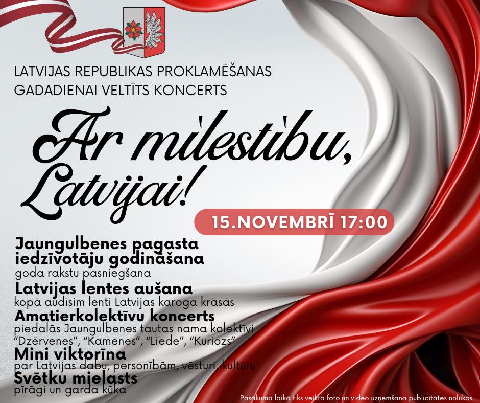 Svētku koncerts, apbalvošana, lentes aušana, viktorīna un mielasts Jaungulbenē