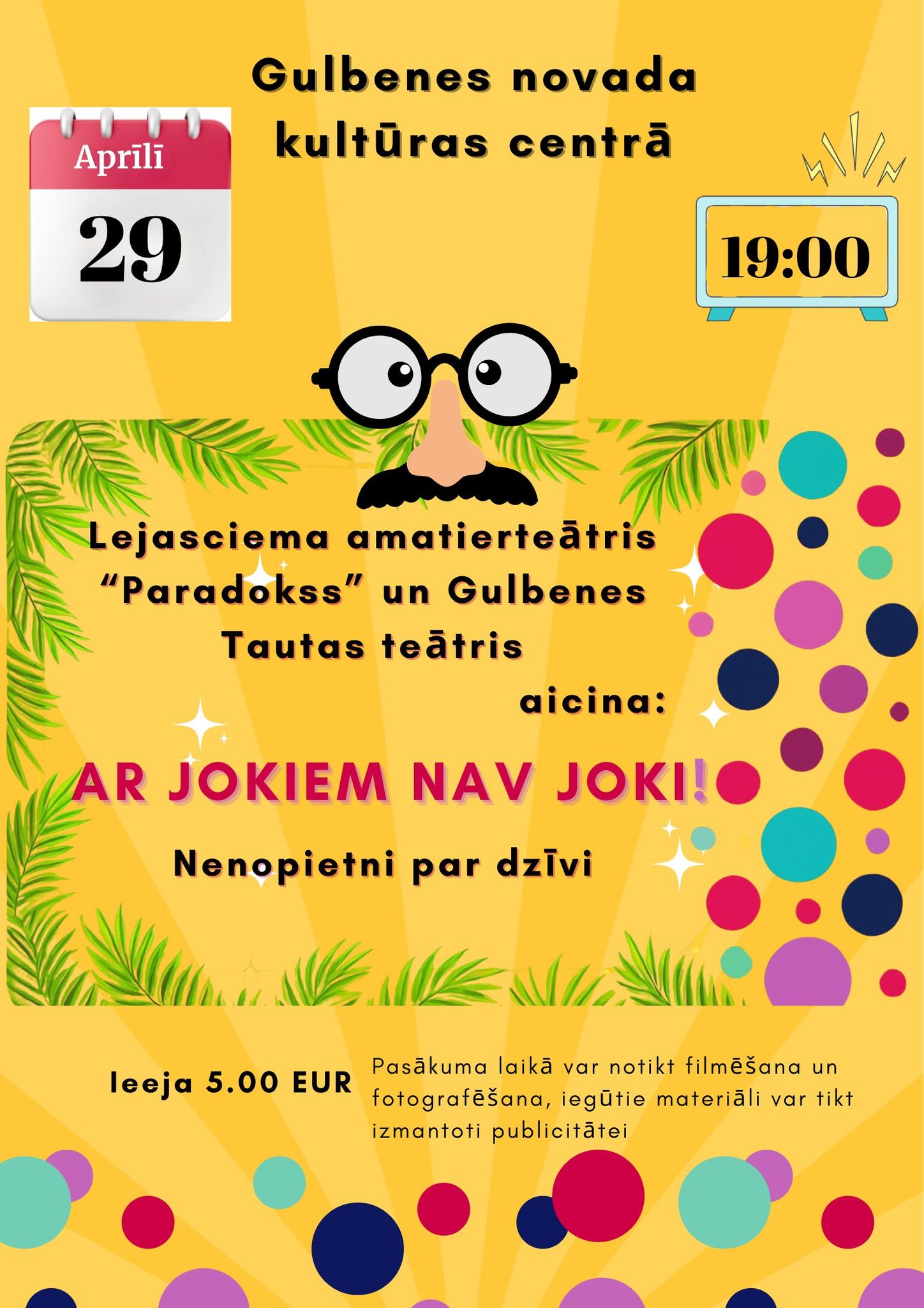 Teātra pasākums "Ar jokiem nav joki! Nenopietni par dzīvi" Gulbenē