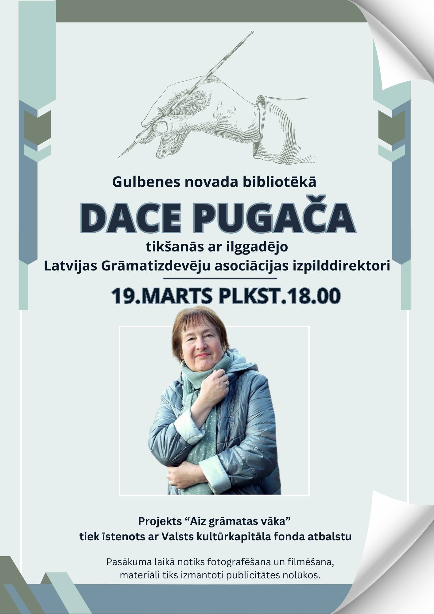 19.martā 18.00 Gulbenes novada bibliotēkā – tikšanās ar Latvijas Grāmatizdevēju asociācijas izpilddirektori Daci Pugaču.