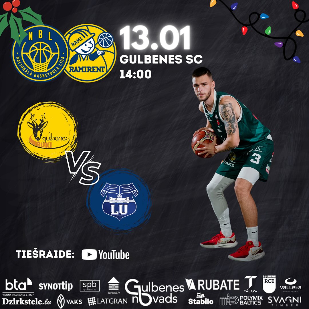 13.janvārī 14.00 Gulbenes sporta centrā – basketbola spēle “Gulbenes Buki/BJSS”-“LU/BS Rīga”.