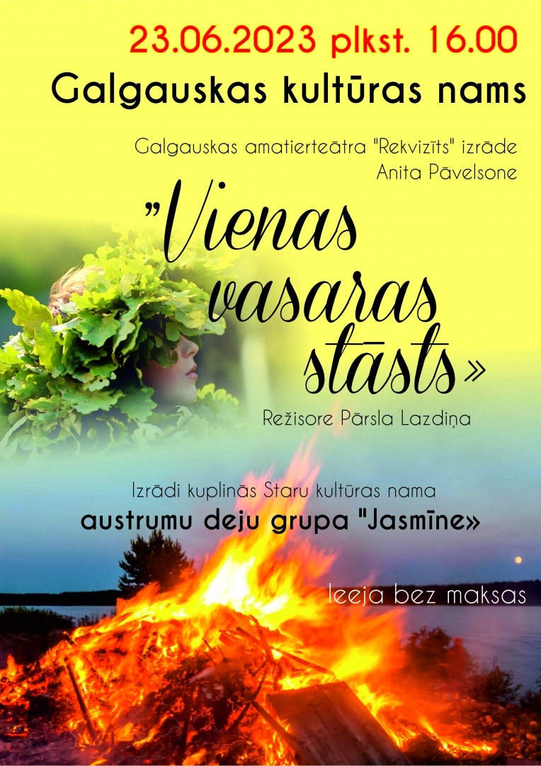 23.jūnijā 16.00 Galgauskas kultūras namā – Galgauskas amatierteātra “Rekvizīts” izrāde: Anita Pāvelsone “Vienas vasaras stāsts”.