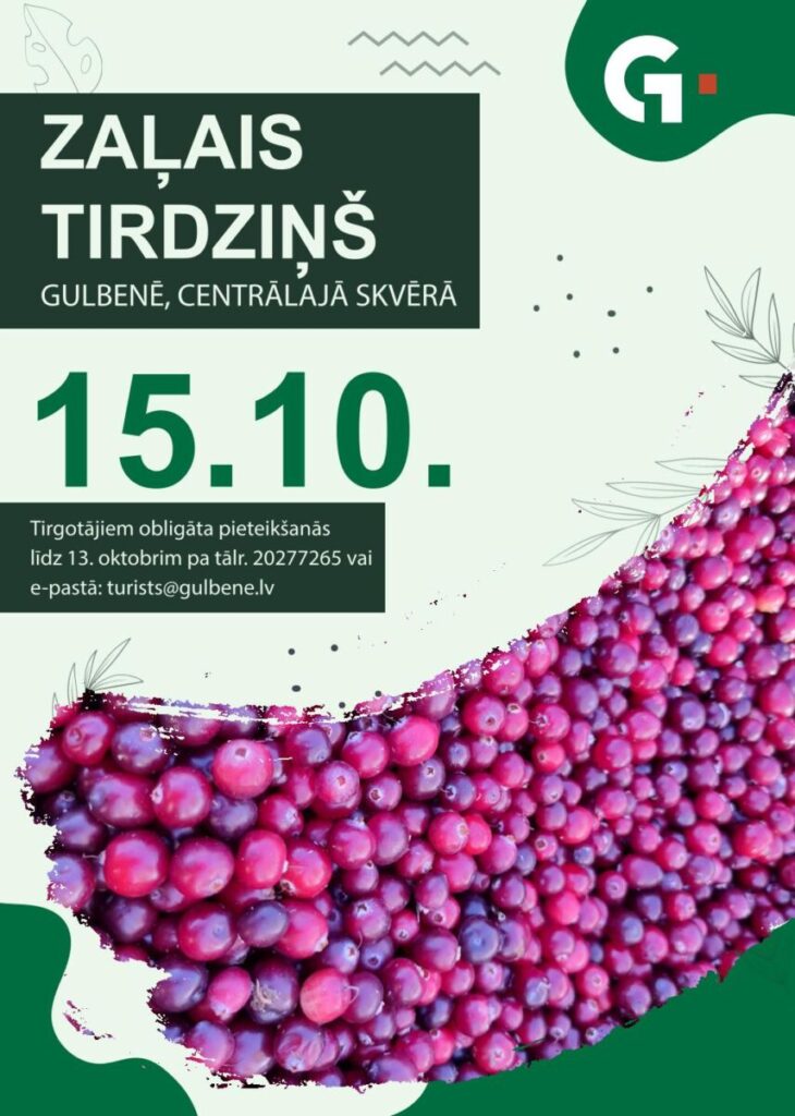 15.oktobrī no 9.00 līdz 13.00 Gulbenē, centrālajā skvērā – Zaļais tirdziņš.