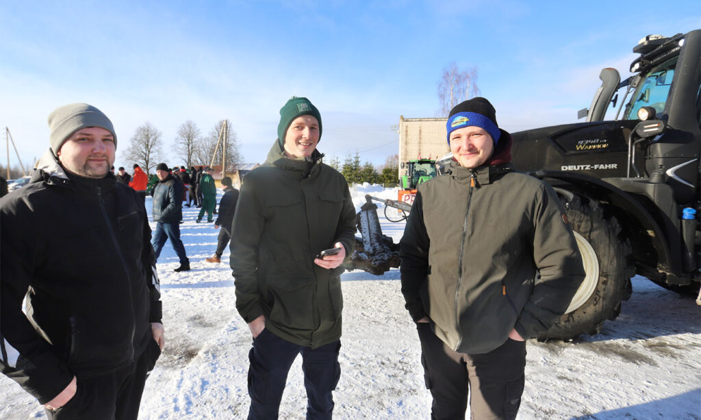 Protesta akcijā piedalījās arī jaunās paaudzes zemnieki (no kreisās): Lauris Neilands, Rūdis Rēderis, Dairis Neilands no Gulbenes novada. Foto: Gatis Bogdanovs