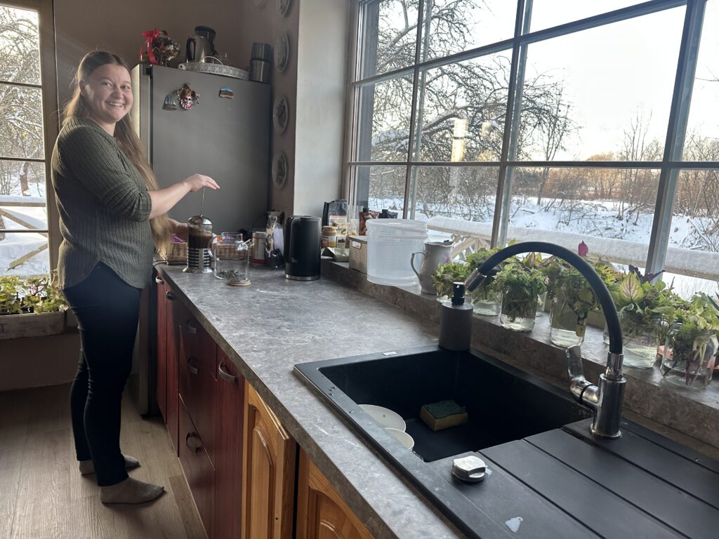 Uz intervijas brīdi Anna uz galda ir uzklājusi kafiju ar pašceptiem gardumiem un smiltsērkšķu sukādēm, kuras gatavojuši viņas draugi no Ūdrupes Smiltenes novadā.