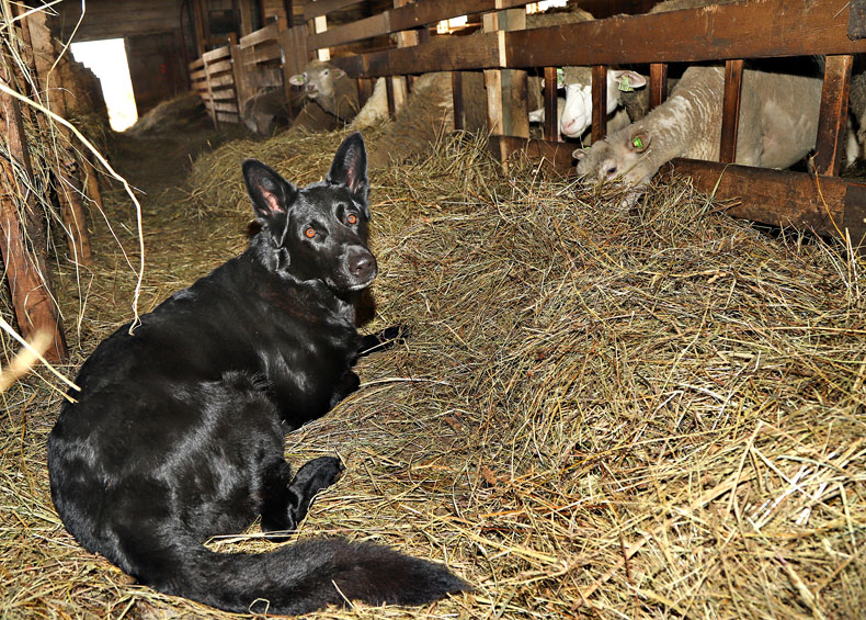 “Hanna ir robežsardzes atvaļinātā seniore. Robežsargu suns. Apmācīts. Ganīt gan palīdz nosacīti, bet nedaudz ieved kārtību,” par savu uzticama četrkājaino draugu smaidot saka Daiga. Foto: Gatis Bogdanovs