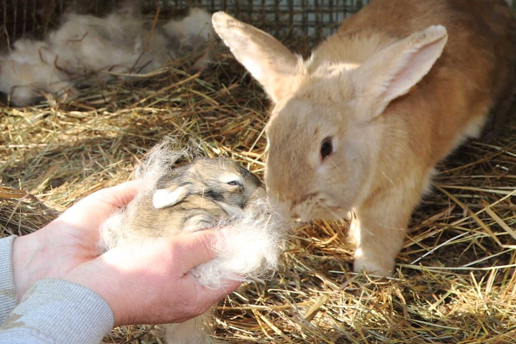 Trušu mamma tramīgi uzrauga savu mazuli, kad Daiga to paņem rokā. Foto: Gatis Bogdanovs