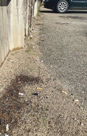 Arī pilsētas parkos vai autostāvvietās, kā, piemēram, Rīgas ielā, paveras vienkārši ‘’burvīgs’’ skats – stavlaukuma malas ir piemētātas ar cigarešu izsmēķiem. Izsmēķus parasti izmet blakus savam auto autovadītāji vai pasažieri, kas ir atbraukuši uz veikaliem vai iestādēm. Pie tuvumā esošjiem veikaliem ir novietoti atkritumu konteineri, kur varētu izmest izsmēķus, bet diemžēl nākas secināt, ka cilvēki nelabprāt aiznes tos uz konteineru. Viens no iemesliem šādai rīcībai varētu būt tas, ka šī nav viņiem piederoša teritorija un par to nav jārūpējas viņiem, jo sētnieks saslaucīs. Pašu mājās pagalmā, dārzā, visticamāk, izsmēķus neviens nemet, bet liek tos pelnutraukā vai atkritumu tvertnē. Protams, ir arī apzinīgi, kas paskatās apkārt un cenšas atrast atkritumu tvertni.