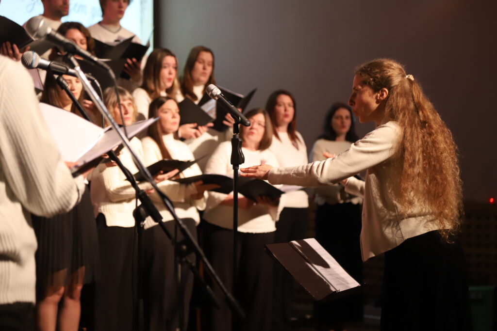 Par koncerta kulmināciju kļuva Lindas Hamfrīsas kompozīcijas “Zaļā lūgšana par Latviju” pirmatskaņojums, dziedot korim un piedaloties arī Druvienas bērnu grupai “Dabauši”. Aplausi ilgi un sirsnīgi piesildīja nekurinātā Druvienas kultūras nama zāli. Foto: Diāna Lozko