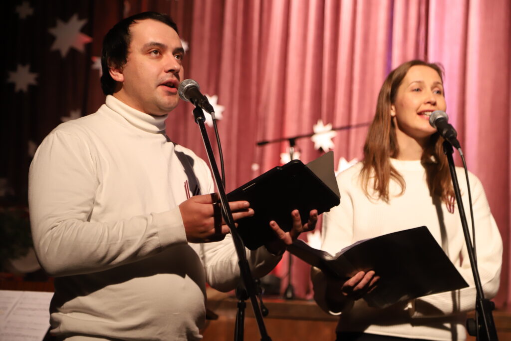 “Trīs zvaigznes” – šīs Jāņa Lūsēna dziesmas ar Māras Zālītes vārdiem izpildījums bija izcils. Solisti – Undīne Ausekle un Emīls Rusovs. Foto: Diāna Lozko