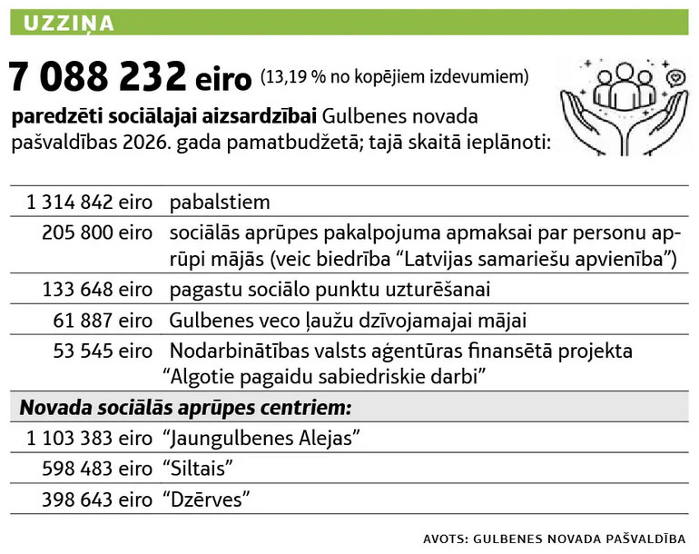 Gulbenes novadā 2026. gadā novada Sociālajā dienestā var vērsties un saņemt: