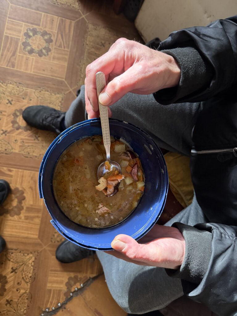 Zupas virtuvei ir arī savi brīvprātīgie palīgi – divas sievietes, kuras Ilga sauc par Mārītēm. “Viņas pie manis strādā jau gadiem ilgi. Malku saskalda, sanes. Palīdz virtuvē,” stāsta Ilga.