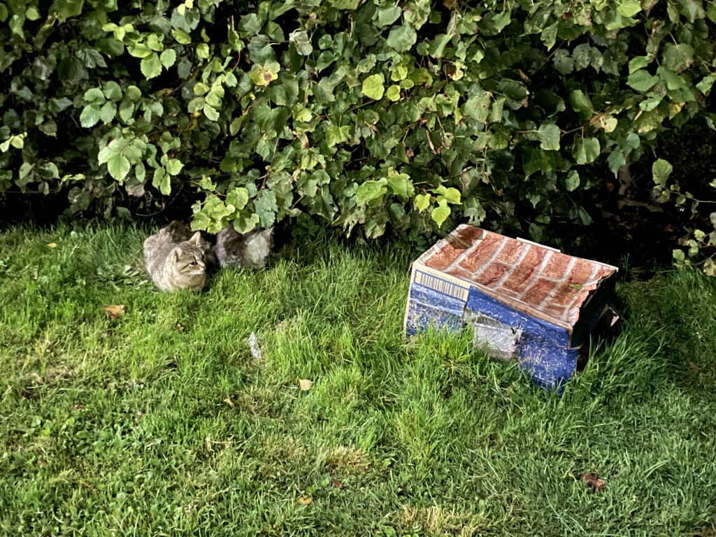 P.s. Nākotnes ielā kaķu māja ir nolikta tieši blakus bērnu rotaļu laukumam. Diemžēl ir bērni, kam vecāki nav iemācījuši empātiju pret mazāk aizsargātu būtni un tie kaķus trenkā, apmētā ar akmeņiem un biedē. Kaķis nemitināsies vietā, kurā jūtas apdraudēts.